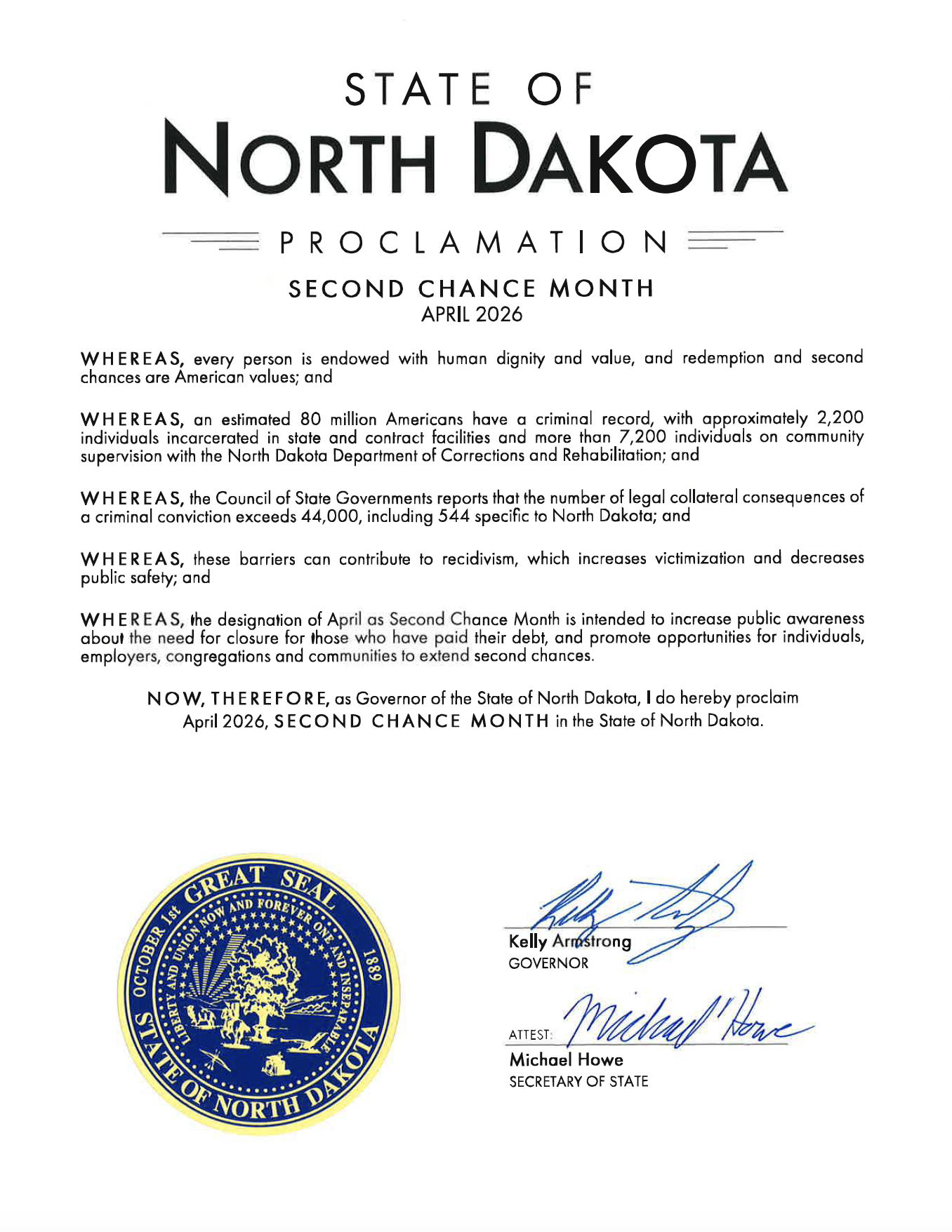 Second Chance Month State Resolutions & Proclamations Stay tuned to see state resolutions and proclamations for Second Chance Month 2026. Colorado Connecticut Delaware Georgia Hawaii Idaho Illinois Kansas Kentucky Massachusetts Michigan Mississippi Missouri Montana New Jersey North Carolina North Dakota Ohio Oklahoma Oregon Pennsylvania South Carolina South Dakota Tennessee Texas Vermont Washington Washington D.C. Wisconsin